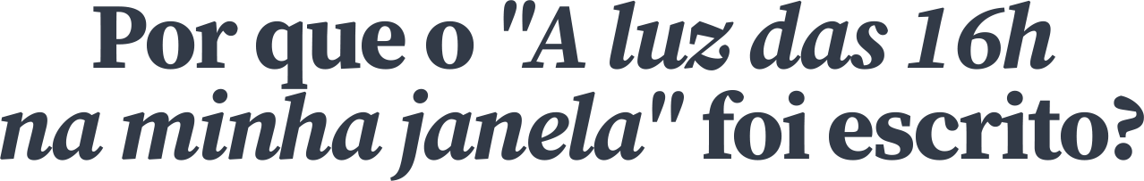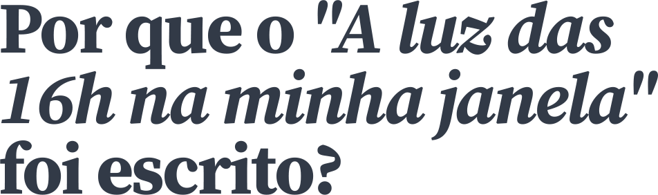 Em “A luz das 16h na minha janela”, Rebeca nos convida a conhecer um espaço emocional — pessoal — que provavelmente é realidade para todos nós cheios de sentimentos. Durante a alta madrugada, o alvorecer ou fim de tarde, sua poesia é capaz de categorizar tais pensamentos em momentos e nos lembrar que, como as horas de um dia, nossos dilemas também são passageiros. Reais, não eternos. Que, se tratados pela Pessoa certa, se tornam caminho para uma Solução que, essa sim, dura pra sempre!