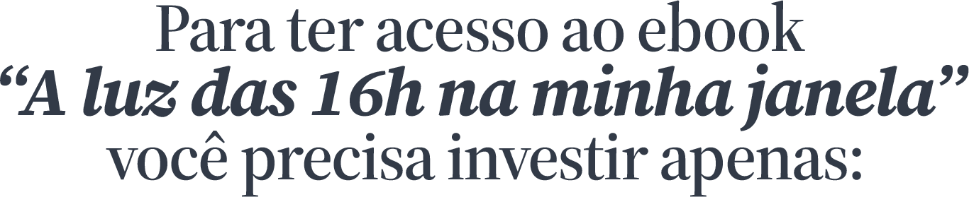 O Ebook “A luz das 16h na minha janela” expõe com vulnerabilidade os pensamentos que cercam a mente de uma mulher de (quase) 30 anos que assim como você, lida diariamente com inseguranças, medos, instabilidades, questionamentos e quebra de expectativas.